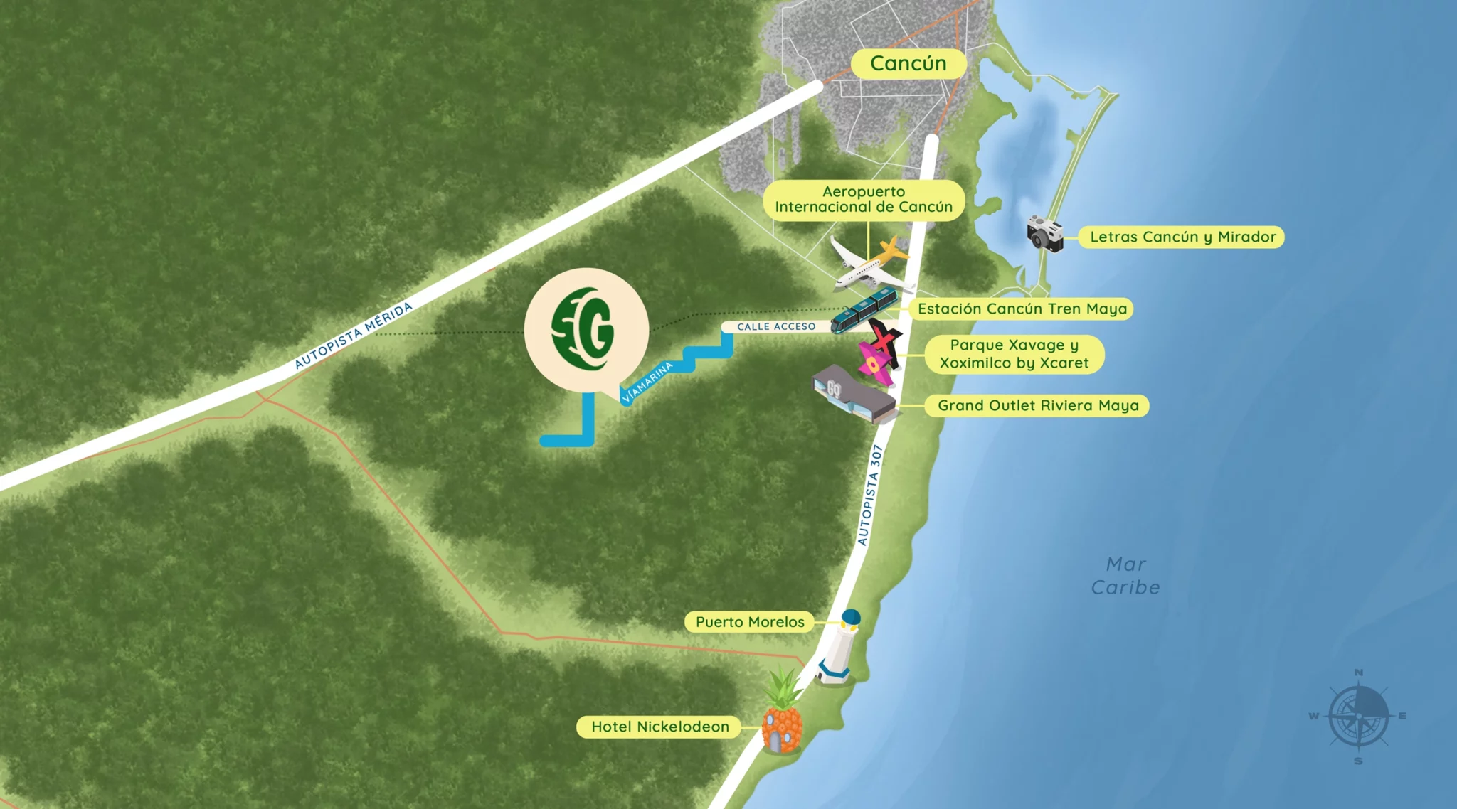 A pocos minutos de la zona hotelera y a solo 25 kilómetros del Aeropuerto Internacional de Cancún, aquí descubrirás la puerta hacia tu futuro ideal, impulsando tus metas hacia la realidad.